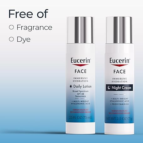 Thông tin sản phẩm Eucerin Face Immersive Hydration Skin Care Set, Daily Face Lotion with SPF 30, 2.5 Fl Oz Bottle + Night Cream with Hyaluronic Acid, 2.5 Oz Bottle, Holiday Gifts for Self Care