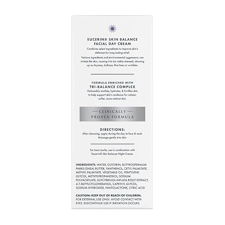 Thông tin sản phẩm Eucerin Skin Balance Day Cream, Sensitive Skin Face Moisturizer Enriched with Tri-Balance Complex, 1.7 Oz Bottle