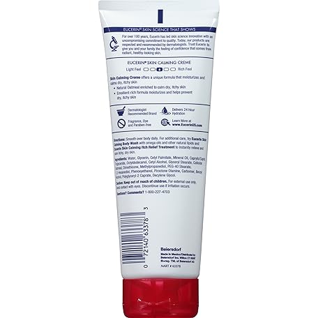 Thông tin sản phẩm Eucerin Skin Calming Cream - Full Body Lotion for Dry, Itchy Skin, Natural Oatmeal Enriched - 8 oz. Tube
