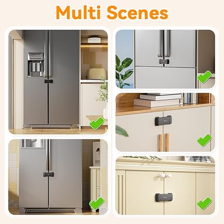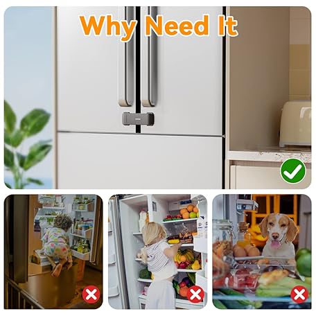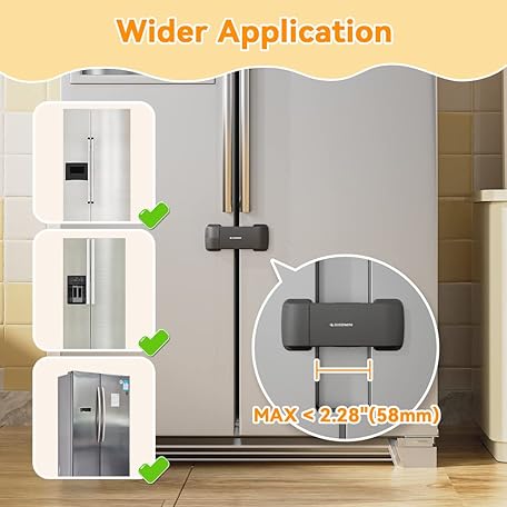 Thông tin sản phẩm EUDEMON Updated French Fridge Lock French Door Refrigerator/Freezer Lock Apply to Max 2.28"(58mm) Two Door Gap Distance,Cabinet Cupboard Lock for Kids & Babies,Easy to Install(1 Pack,Black)