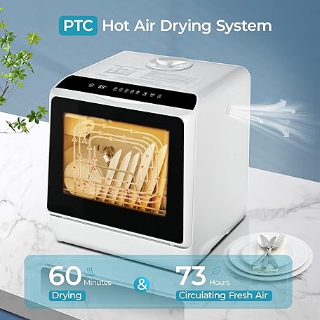 Thông tin sản phẩm EUHOMY Countertop Dishwasher Portable with 6 Programs, 5L Built-in Water Tank for Apartments & RV, 167℉ High-Temp, No Hookup Needed, Mini Dishwasher with Baby Care, Air Dry/Quick/ECO/Fruit/Normal Mode
