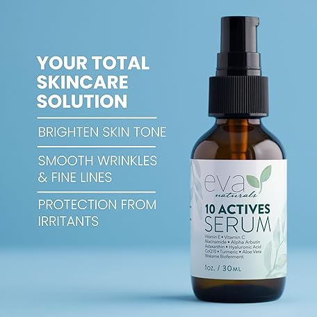 Thông tin sản phẩm Eva Naturals 10 Actives Serum – Vitamin C, Niacinamide, Hyaluronic Acid, Turmeric, CoQ10 – Natural Anti Aging Face Serum for Dark Spots, Wrinkles, Acne, Skin Care & Facial Spot Remover