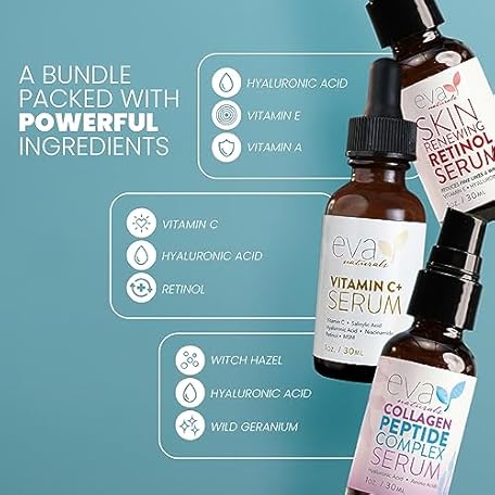 Sản phẩm Eva Naturals Trifecta Face Serum Set – Retinol, Vitamin C & Peptides with Hyaluronic Acid & Niacinamide – Anti-Aging Skincare Bundle for Women – Collagen Boosting, Wrinkle & Spot Treatment đang được bán với giá ưu đãi là $22.3014 tại nước Mỹ.