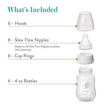 Evenflo Feeding Premium Proflo Venting Balance Plus Standard Neck Baby, Newborn and Infant Bottles - Developed by Pediatric Feeding Specialists - 4 Ounce (Pack of 6)