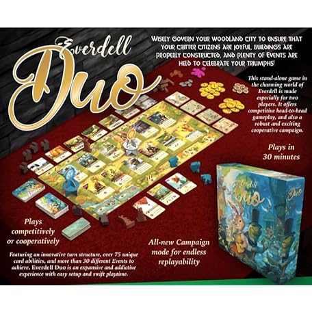 Thông tin sản phẩm Everdell Duo – 2-Player Standalone Board Game with Competitive, Co-Op & Campaign Modes – Strategy Game with Woodland Theme, Ages 10+, Fast 30-Minute Gameplay