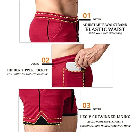 • EVERWORTH Men's 2 in 1 Workout Shorts 5" Quick Dry Gym Shorts Bodybuilding Short Shorts Compression Shorts with Zipper Pocket