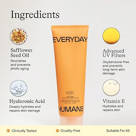Thương hiệu EVERYDAY HUMANS là cái tên nổi tiếng được rất nhiều khách hàng trên thế giới chọn lựa. Với kiểu dáng đẹp mắt, sang trọng, sản phẩm Everyday Humans Oh My Bod SPF50 Sunscreen Body Lotion 3.4 oz | Travel Ultra Light & Invisible SPF | Sweat & Water Resistant | Doesn't Sting Eyes | UVA/UVB Broad Spectrum Protection | Oxybenzone Free là sự lựa chọn hoàn hảo nếu bạn đang tìm mua một món cho riêng mình.