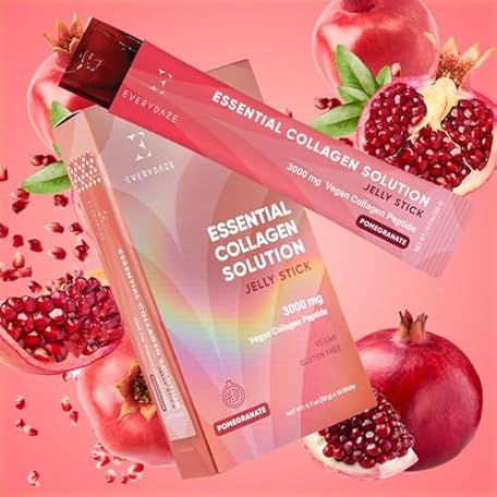 EVERYDAZE Essential Collagen Solution Jelly Stick | 40 Pack (4 x 10ct) | Vegan Collagen Peptide Supplement Packets | Hair, Skin, Nail, Bone Health for Men & Women (40 Pack, Pomegranate)