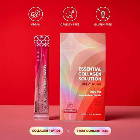 Thông tin sản phẩm EVERYDAZE Essential Collagen Solution Jelly Stick | Vegan Collagen Peptide | Pomegranate | 10 Packs | Hair, Skin, Nails, Beauty, Bone | Vitamins, Minerals, Antioxidants for Men & Women