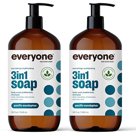 Sản phẩm Everyone 3-in-1 Soap, Body Wash, Bubble Bath, Shampoo, 32 Ounce (Pack of 2), Pacific Eucalyptus, made with Essential Oils for Men and Women đang được bán với giá ưu đãi là $25.4842 tại nước Mỹ.