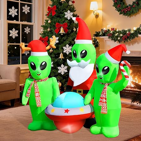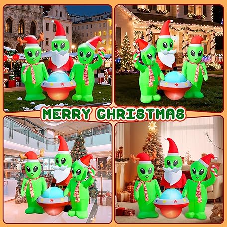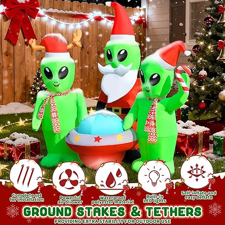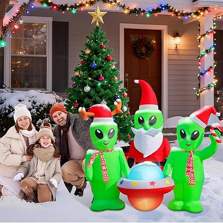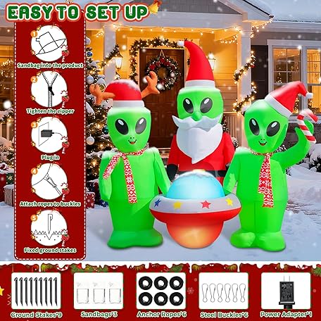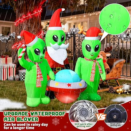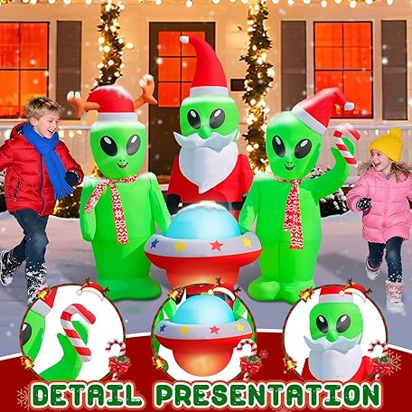 Thông tin sản phẩm Evoio Christmas Inflatables Alien Outdoor Decorations, 5 FT Christmas Blow Up Alien Family Inflatable with UFO Spaceship Built-in LED Lights, Xmas Inflatables Decor for Indoor Yard Lawn Garden Outside