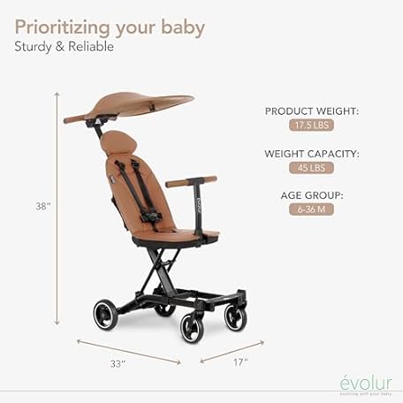 Thông tin sản phẩm Evolur Cruise Rider Stroller with Canopy, Lightweight Umbrella Stroller with Compact Fold, Easy to Carry Travel Stroller - Cognac
