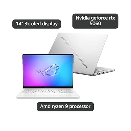 • EXCaliberPC [2025] ASUS ROG Zephyrus G14 GA403UM-G14.R9HX4 (AMD Ryzen 9 270, 16GB LPDDR5X, 1TB NVMe SSD, NVIDIA GeForce RTX 5060, 14" 3K OLED 120Hz, Windows 11) Gaming Laptop