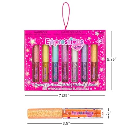 Sản phẩm Expressions girl 7pc Fruity Flavored Lip Gloss Set - Lip Gloss in Assorted Fruity Flavors, Non Toxic Makeup for Kids & Teens đang được bán với giá ưu đãi là $8.5783 tại nước Mỹ.