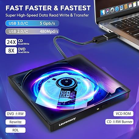 Thương hiệu Laurensory là cái tên nổi tiếng được rất nhiều khách hàng trên thế giới chọn lựa. Với kiểu dáng đẹp mắt, sang trọng, sản phẩm External DVD Drive USB 3.0 Type-C Portable CD DVD Player for Laptop +/-RW Disk Drive CD ROM Burner Writer CD/DVD Burner Reader Compatible with Desktop Windows Linux OS Apple MacBook là sự lựa chọn hoàn hảo nếu bạn đang tìm mua một món cho riêng mình.