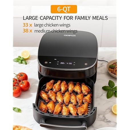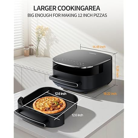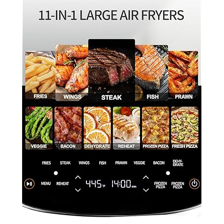 Extra Large Air Fryer,11-IN-1 6 QT 450F Air Fryer with Superior Airflow, Dual Heat Source Technology, Smart Digital Wide Fryer with Basket, Fits a 12" Pizza or 6-Slice Toast
