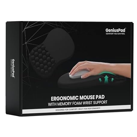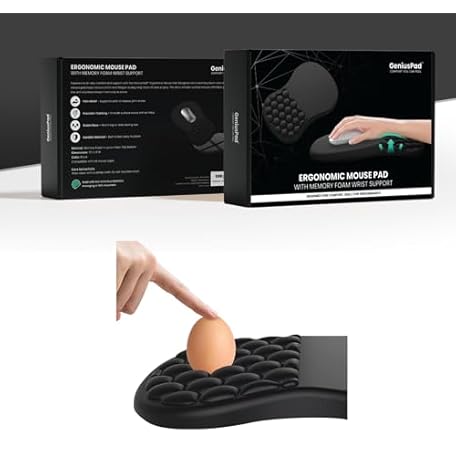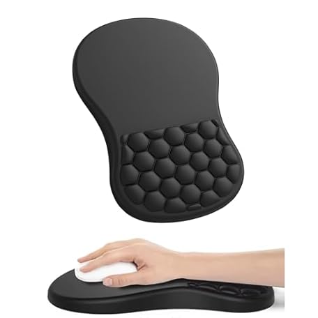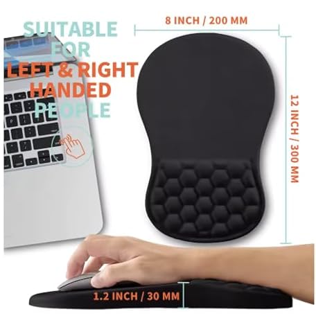 Extra Large Ergonomic Mouse Pad with Wrist Support & Massage Design – Memory Foam Cushion, Non-Slip PU Base – Carpal Tunnel Pain Relief for Wireless Mouse & Desk Use – 12x8 Inch (Black)