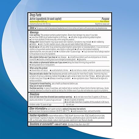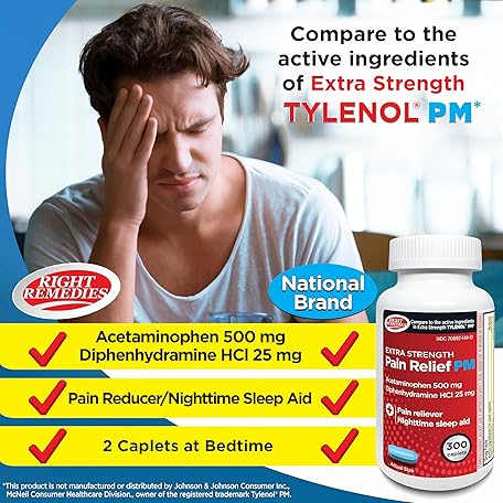 Thông tin sản phẩm Extra Strength Pain Relief PM & Nighttime Sleep Aid Caplets,(300 count), Acetaminophen 500 mg & Diphenhydramine HCl 25 mg, Non-Habit Forming, Compare to Active ingredients of Tylenol PM