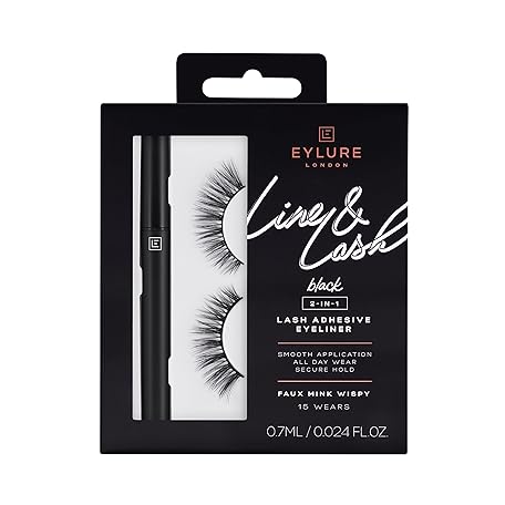 Thông tin sản phẩm Eylure Line & Lash Kit, 2-in-1 Lash Black Glue Eyeliner and False Lashes, Faux Mink Wispy