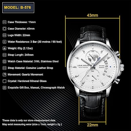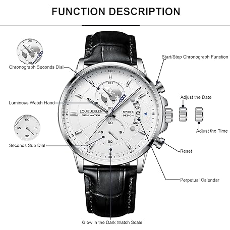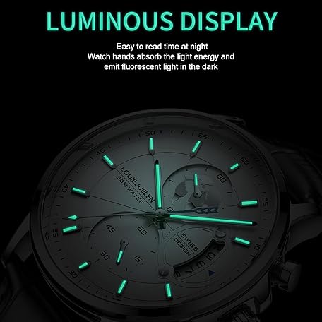 Thông tin sản phẩm eYotto Men's Luxury Chronograph Quartz Wrist Watch, Casual Dress Black Leather Band Calendar Date Analog Formal Business Waterproof Wristwatch, Fashion Gifts Luminous Dial Watches for Men