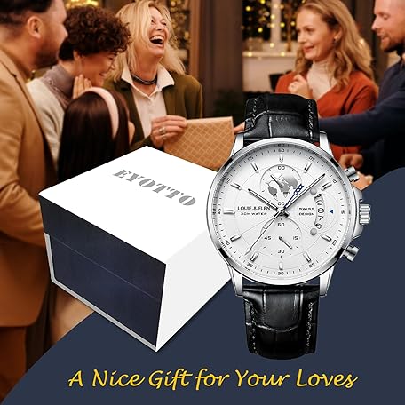 Thương hiệu eYotto là cái tên nổi tiếng được rất nhiều khách hàng trên thế giới chọn lựa. Với kiểu dáng đẹp mắt, sang trọng, sản phẩm eYotto Men's Luxury Chronograph Quartz Wrist Watch, Casual Dress Black Leather Band Calendar Date Analog Formal Business Waterproof Wristwatch, Fashion Gifts Luminous Dial Watches for Men là sự lựa chọn hoàn hảo nếu bạn đang tìm mua một món cho riêng mình.