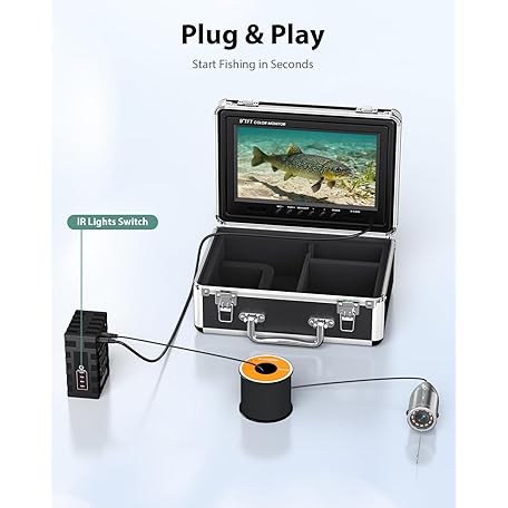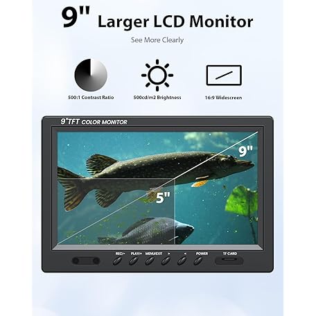 Thông tin sản phẩm Eyoyo Underwater Fishing Camera Portable Video Fish Finder 9 inch LCD Monitor 1000TVL Waterproof Camera Underwater DVR Video Fish Cam 30m Cable 12pcs IR Infrared Lights for Ice, Boat and Lake Fishing