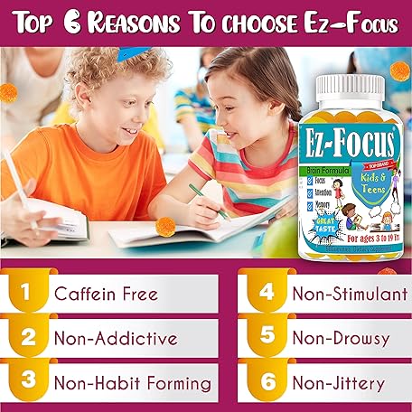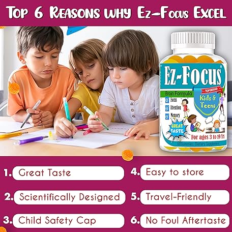 Thông tin sản phẩm Ez-Focus Gummies for Kids, Teens and Youth – Brain Focus, Memory & Attention Support, DHA & Omega-3 for Kids, Concentration and Focus Supplement, Calm and Study Brain Vitamins 60 ct