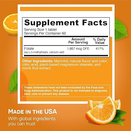 Thông tin sản phẩm EZ Melts Dissolvable Folate 1,667 mcg, L-Methylfolate, Sugar-Free, 2-Month Supply - 1 Pack