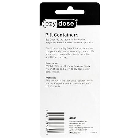 Thông tin sản phẩm EZY DOSE Daily Round, Compact, Small, Disrcrete, Portable On-The-Go Pocket Pharmacy, Pill Box, Organizer and Vitamin Containers, Snap Shut Lids, Travel Friendly, Colors May Vary, 2 Pack, BPA Free