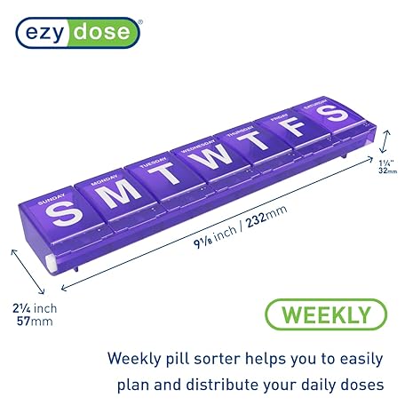 Thông tin sản phẩm EZY DOSE Weekly (7-Day) Pill Planner, Medicine Case, Vitamin Organizer Box, 2X-Large Locking Compartments to Secure Prescription Medication and Prevent Accidental Spilling, Color May Vary, BPA Free