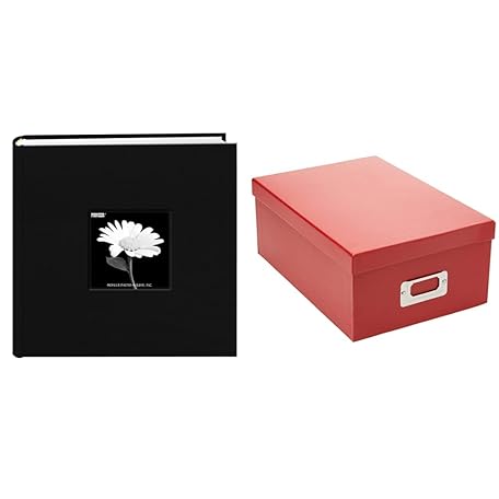 Fabric Frame Cover Photo Album 200 Pockets Hold 4x6 Photos, Deep Black & Photo Storage Box - Bright Red