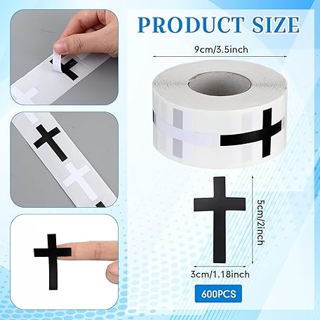 Faccito 600pcs Cross Stickers Crosses Christian Stickers Religious Catholic Sticker Roll for Christian Athlete Baseball Football Basketball Helmet Water Bottle Backpack Sport Supplies
