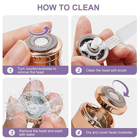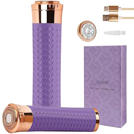 Facial Hair Removal for Women, Painless Rechargeable Hair Removal Device, Comes with 2 Replacement Heads, Portable Electric Shaver/Razor for Face, Chin, Upper Lip, arms and Peach Fuzz (Purple)
