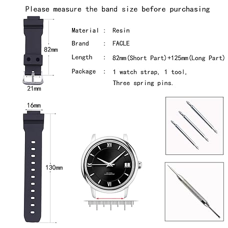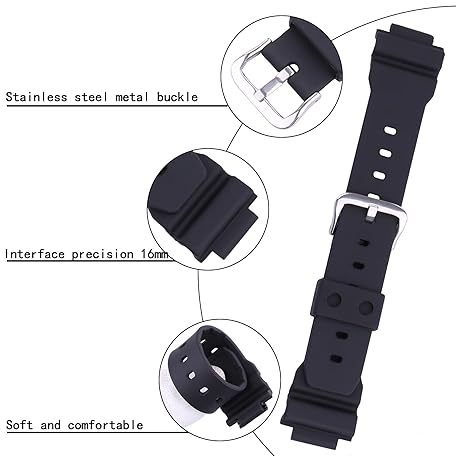 • FACLE Men's resin watch strap 16mm compatible with Casio DW-9052 DW-9051 DW-004C 71606395 G-2500 outdoor sports rubber watch bands accessories wristband watch chain