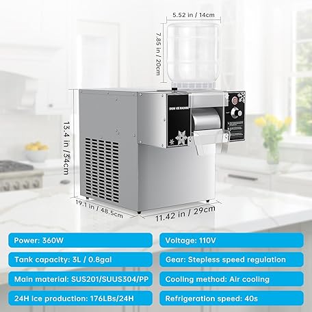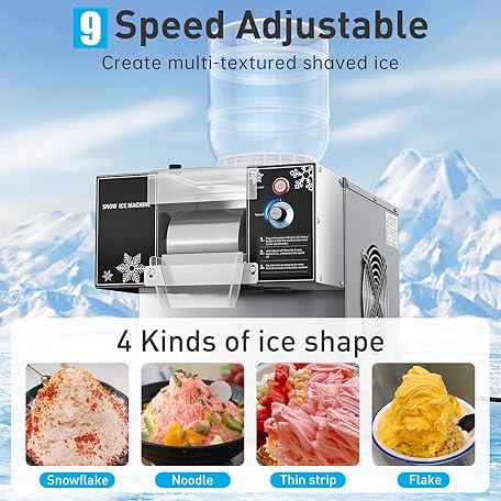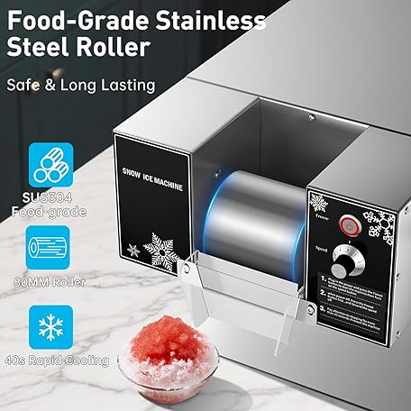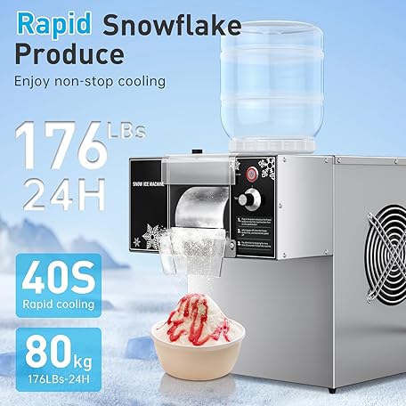 • Fajiduo Snowflake Ice Machine, 176 LBS/24H Commercial Shaved Ice Machine, Rapid Cooling and 9 Adjustable Speed, Stainless Steel Snowflake Ice Maker for Home, Restaurant, Office, Party