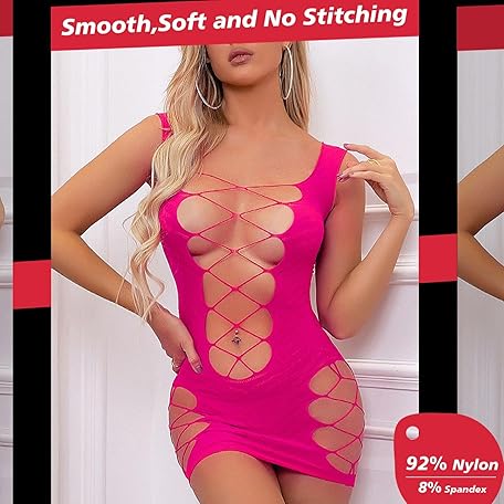 • Famstar Sexy Lingerie for Women Naughty Fishnet Bodysuit Lingerie Set Outfits Erotic Mesh Sheer Teddy