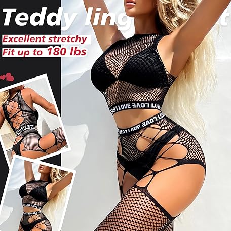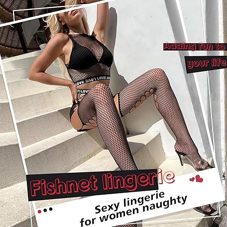 • Famstar Sexy Lingerie for Women Naughty Fishnet Lingerie Set Bodysuit Erotic Teddy Sheer Mesh Outfits