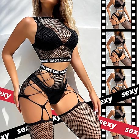 Famstar Sexy Lingerie for Women Naughty Fishnet Lingerie Set Bodysuit Erotic Teddy Sheer Mesh Outfits