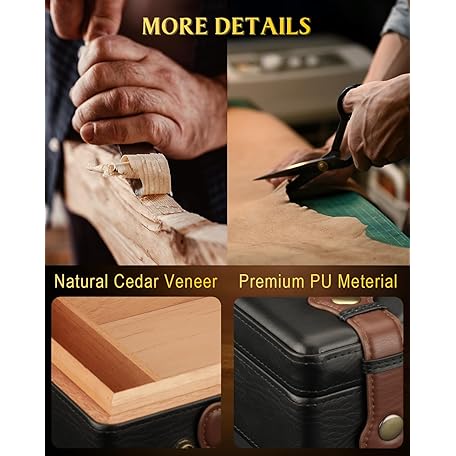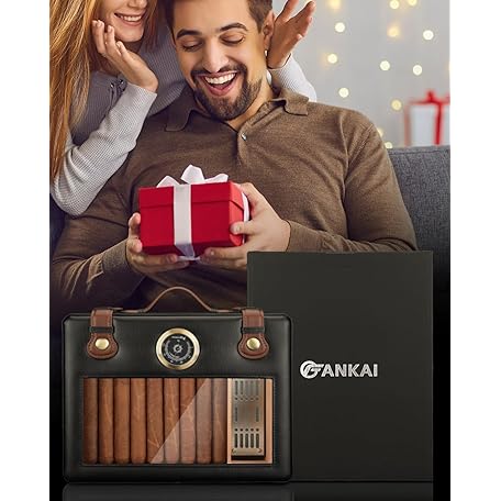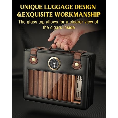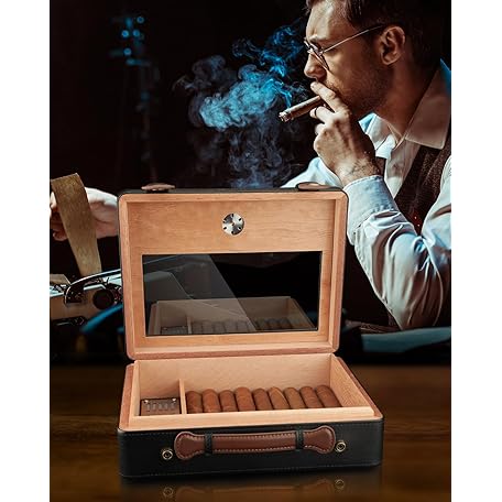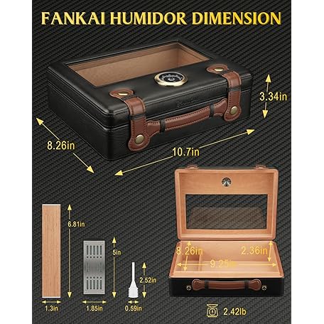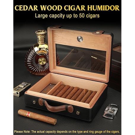 FANKAI Cigar Humidor, Cigar Box with Hygrometer Humidifier and Divider, Glass Top Cedar Wood Storage Case for 30pcs-50pcs Cigars,Travel Cigar Accessories