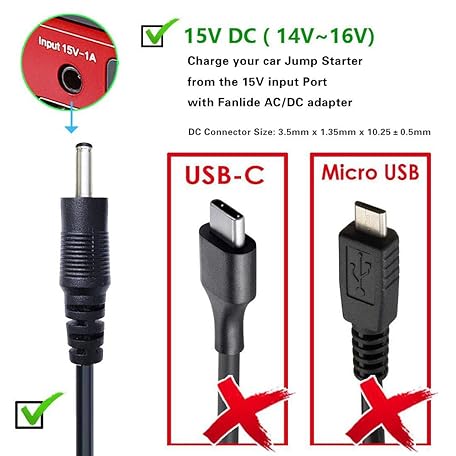 Sản phẩm Fanlide DC 15V 1A Adapter Charger for Car Jump Starter, Peak 450A 500A 600A 800A 1000A Auto Battery Booster Jump Starter Charger đang được bán với giá ưu đãi là $16.3391 tại nước Mỹ.