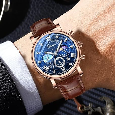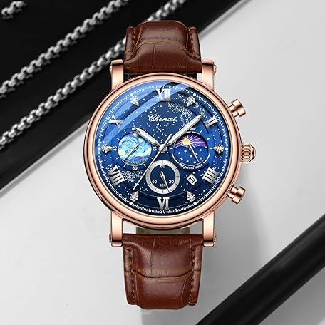Sản phẩm FANMIS Men's Classic Multifunctional Military Sports Analog Watch Business Dress Waterproof Luminous Chronograph Starry Sky Moon Phase Leather Wristwatch đang được bán với giá ưu đãi là $30.4982 tại nước Mỹ.