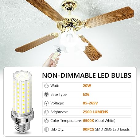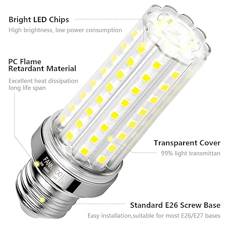 Sản phẩm FanNicoo LED Corn Light Bulb 150W Equivalent 2500 Lumen 6500K Cool Daylight White 20W E26/E27 Base Non-dimmable Ceiling Fan Corn Lighting for Home Garage Warehouse Indoor LED Corn Bulbs Pack of 4 đang được bán với giá ưu đãi là $25.0155 tại nước Mỹ.