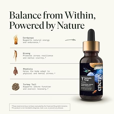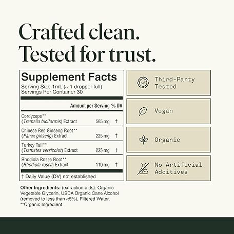Thông tin sản phẩm Fantastic Fungi Cordyceps Mushroom Tincture Drops - 4-in-1 Stress Support & Energy Elixir with Ginseng, Turkey Tail & Rhodiola - Organic Mushroom Extract Liquid, 30 Servings, 1 fl oz