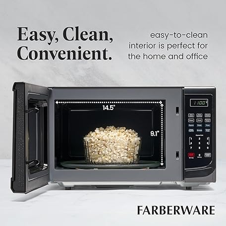 Thông tin sản phẩm Farberware 1.1 Cu. Ft. Countertop Microwave Oven – 1000 Watts Power, Auto Cook Settings, Defrost, Easy Clean and Child Safety Lock - Black