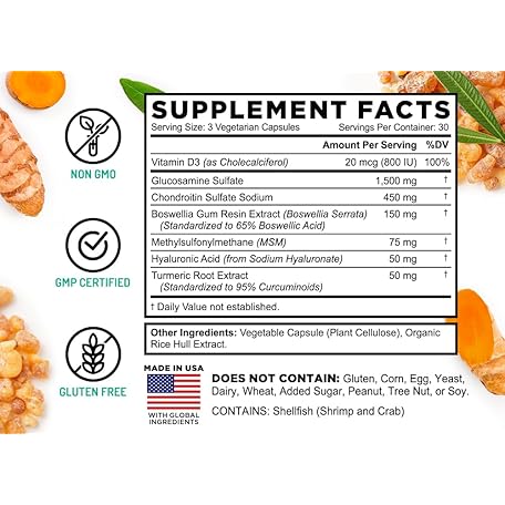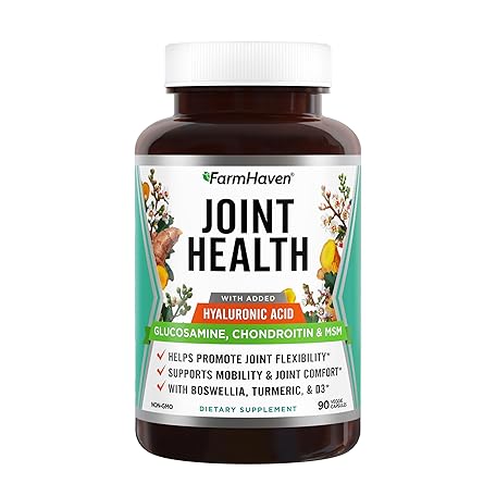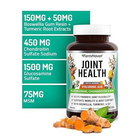 FarmHaven Glucosamine Chondroitin MSM with Boswellia, Turmeric| Added Hyaluronic Acid & Vitamin D3 | Promotes Joint & Muscle Health & Inflammation Response | Non-GMO & Gluten Free | 90 Capsules