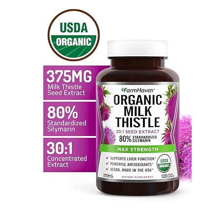 Sản phẩm FarmHaven USDA Organic Milk Thistle Capsules |30X Concentrated Seed Extract & 80% Silymarin Standardized - Supports Liver Function and Overall Health | Non-GMO | 120 Veggie Capsules đang được bán với giá ưu đãi là $32.6891 tại nước Mỹ.