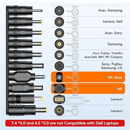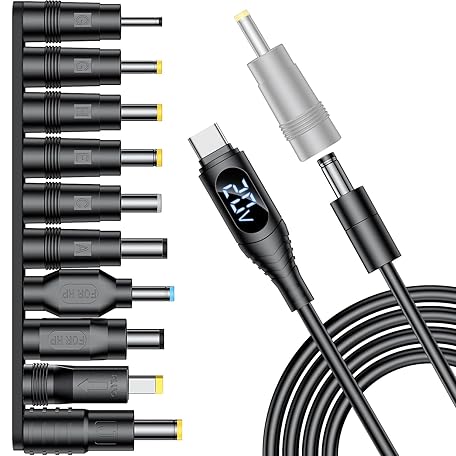 FARSENSE Universal Laptop DC Charger Replacement kit,Round Barrel 100W PD Trigger Cable with 10 Connector and Display Voltage for Sony/Samsung/Acer/Asus/Lenovo/Dell/HP Laptop,Etc Charging