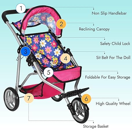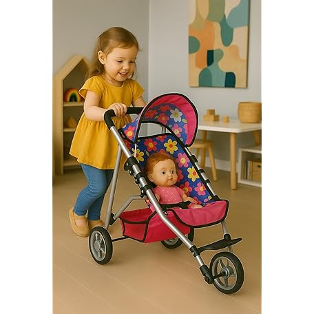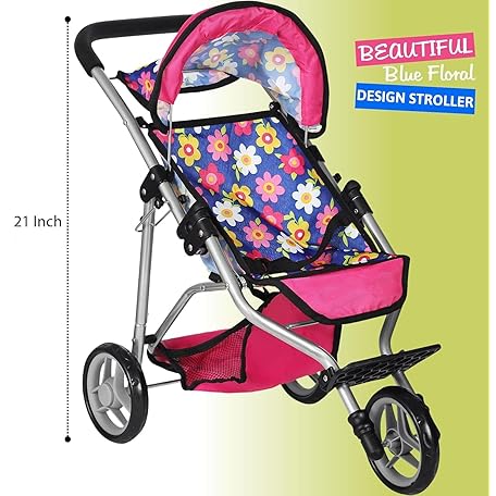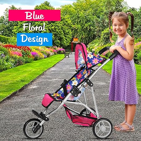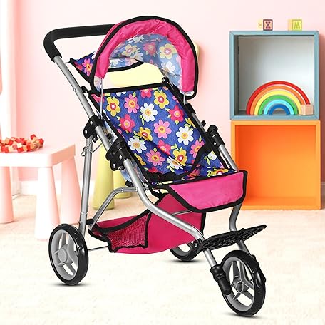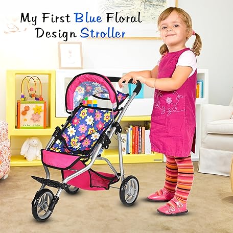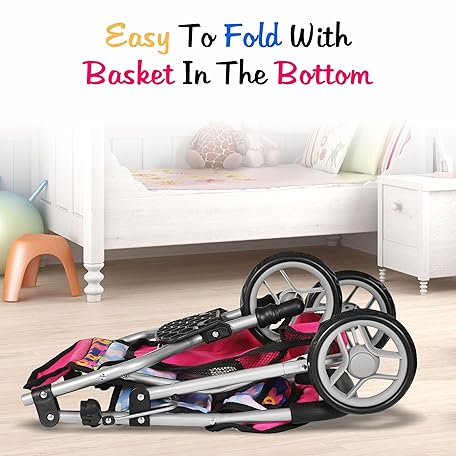 fash n kolor® Baby Doll Stroller Gift for Kids, Toy Doll Stroller with Adjustable Canopy & Storage Basket Push Pram Baby Stroller for Dolls - Foldable Doll Stroller for Pretend Play Dolls Accessories