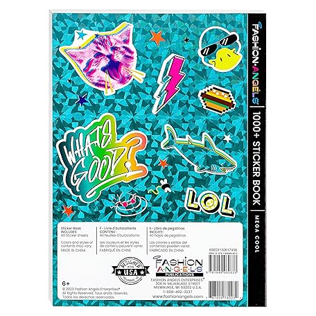 Thông tin sản phẩm Fashion Angels 1000+ Mega Cool Stickers for Kids - Fun Craft Stickers for Scrapbooks, Planners, Gifts and Rewards, 40-Page Sticker Book for Kids Ages 6+ and Up