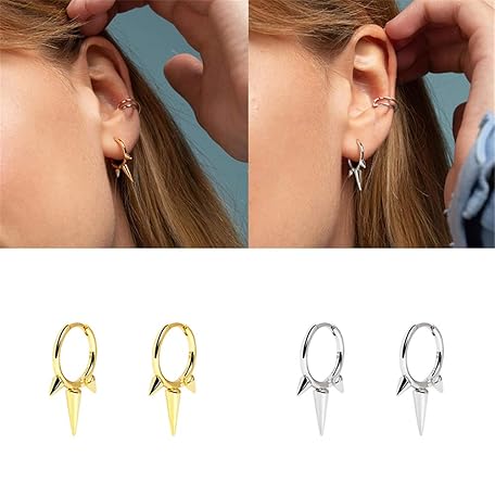 Sản phẩm Fashion Spike Sterling Silver Hoop Earrings for Women Girls Men Hypoallergenic Minimalist Huggie Small Sleeper Hoops Cartilage Cuff Helix Stud Wrap Personalized Punk Jewelry đang được bán với giá ưu đãi là $14.1591 tại nước Mỹ.